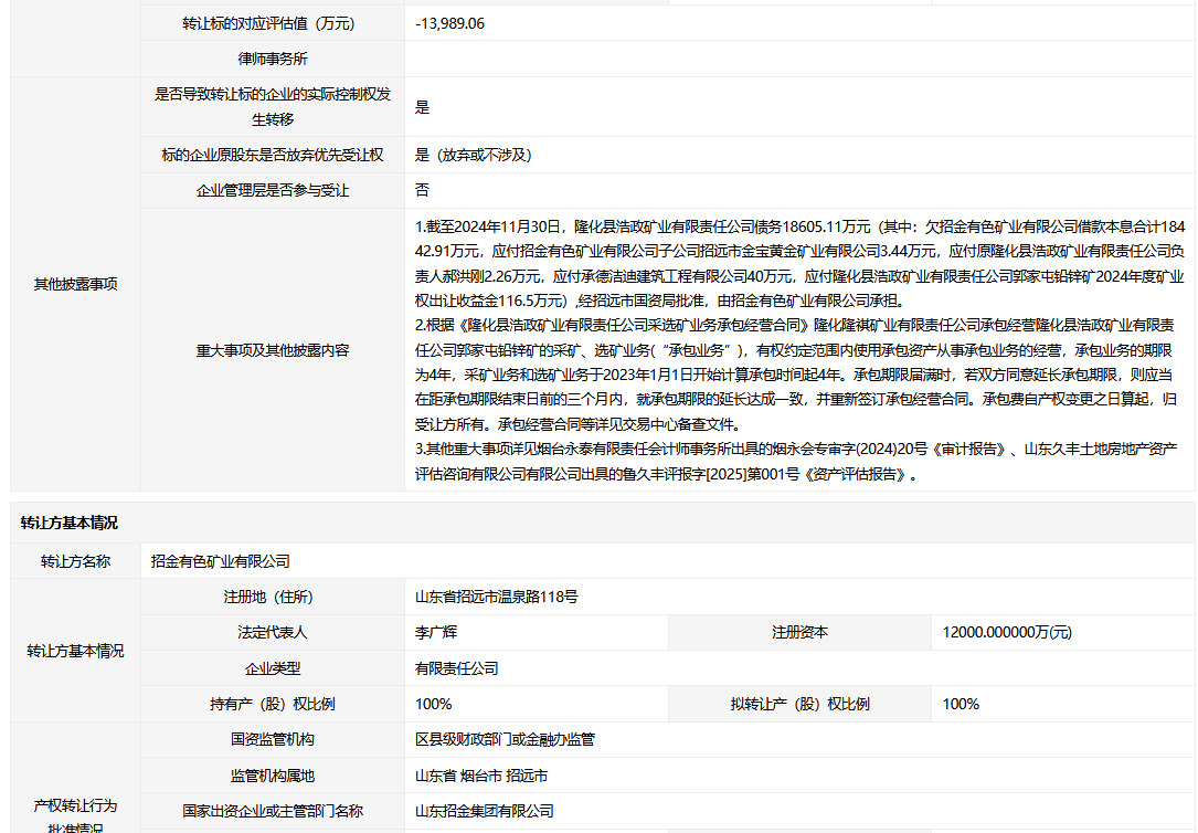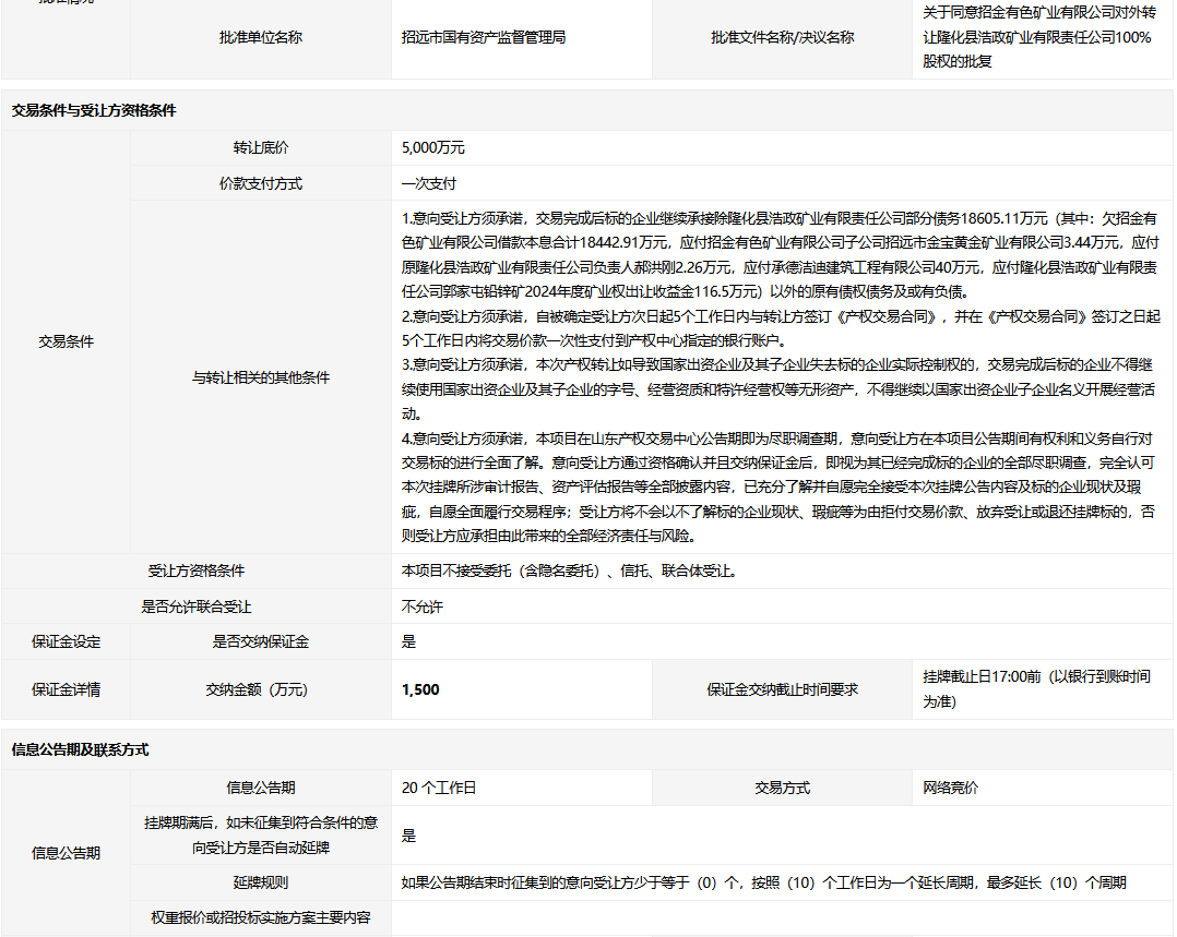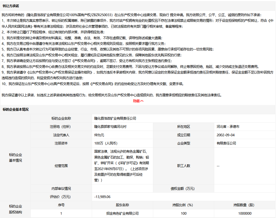隆化縣浩政礦業(yè)有限責任公司100%國有產權