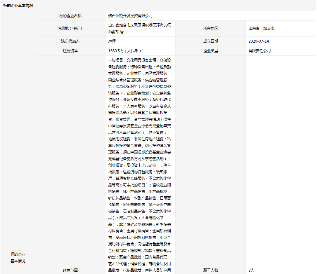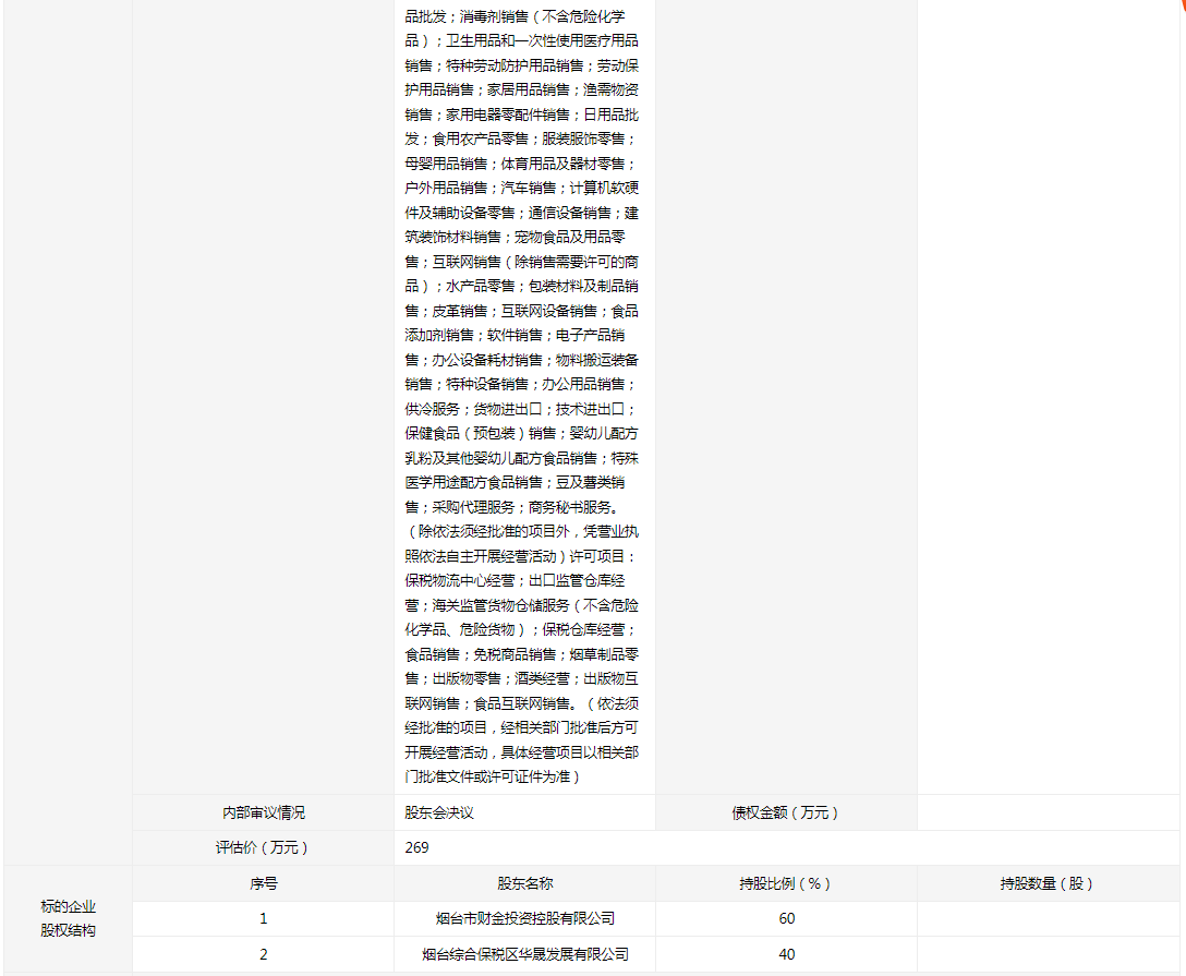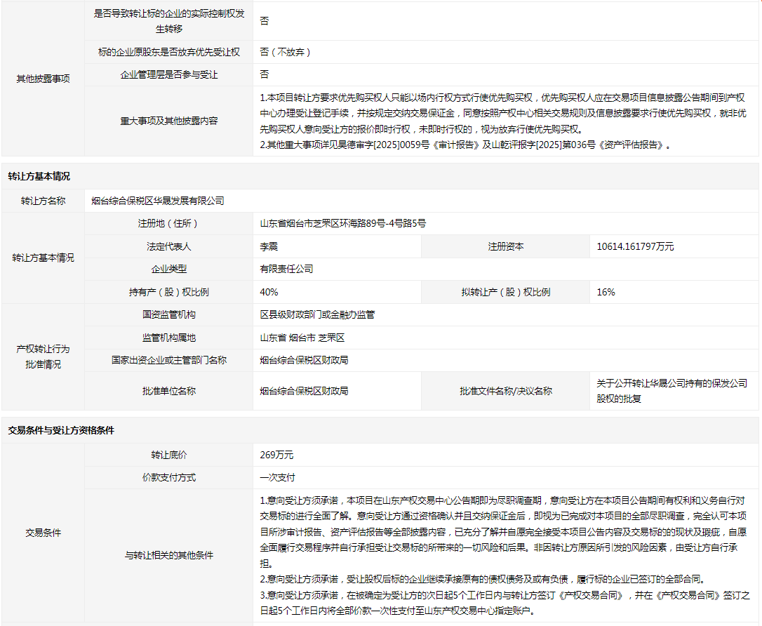 煙臺(tái)保稅開發(fā)投資有限公司16%國(guó)有股權(quán)